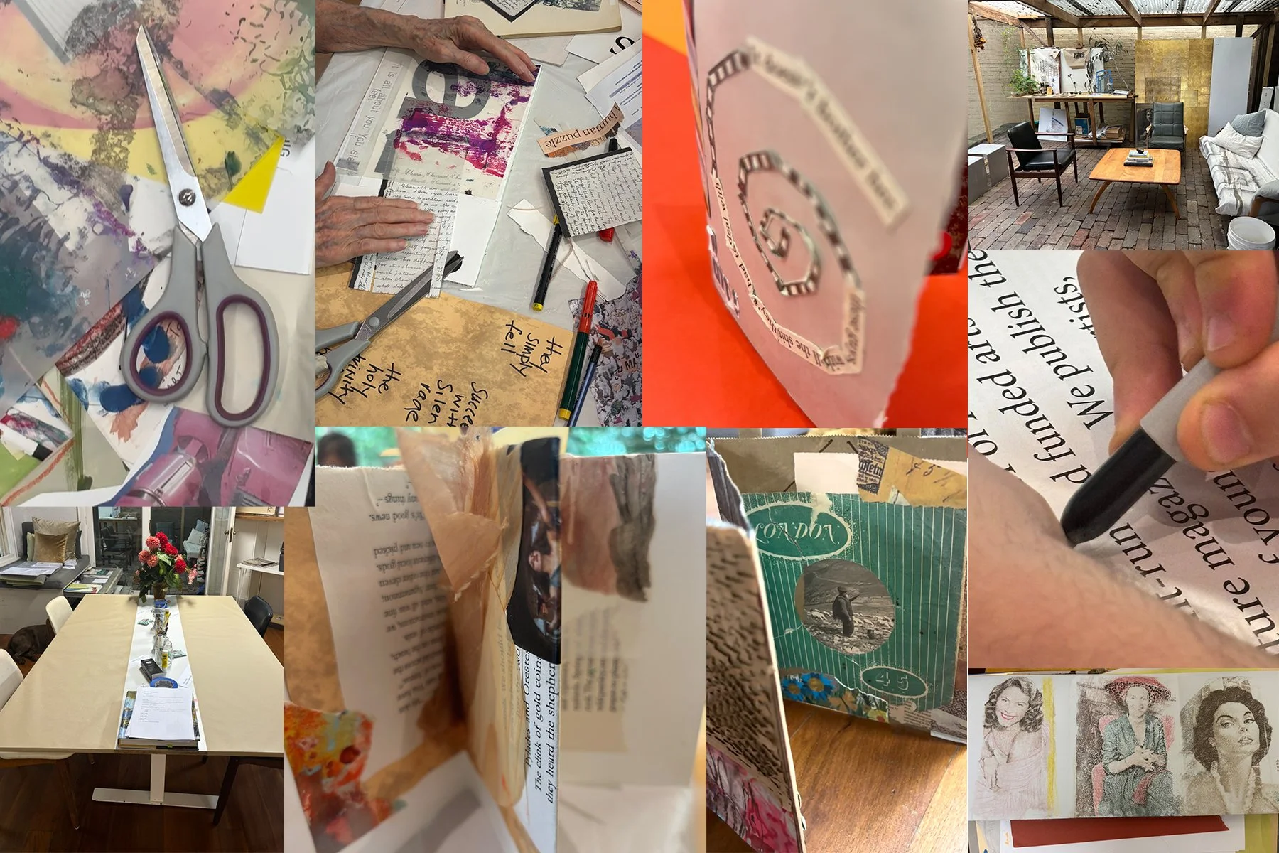 Over 2.5 hours, you will work with short writing prompts, harvested words and phrases, collage materials, and simple visual making processes. From this, you will create a personal accordion-style art book or zine, alongside written reflections and response sheets you can take home.
